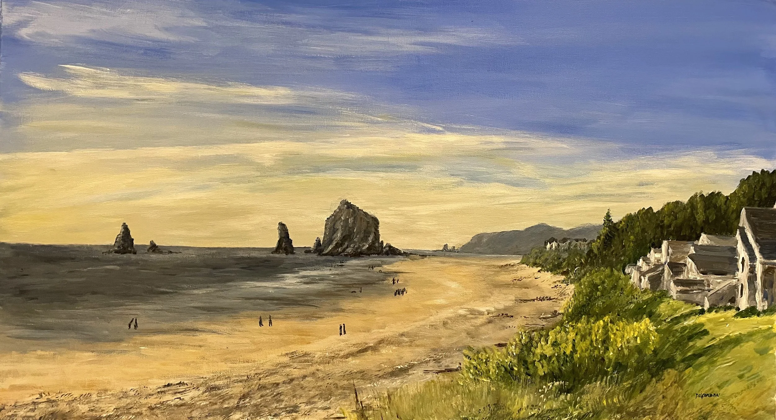 Cannon Beach in the evening | 18x32" Acrylic on canvas | September 2022