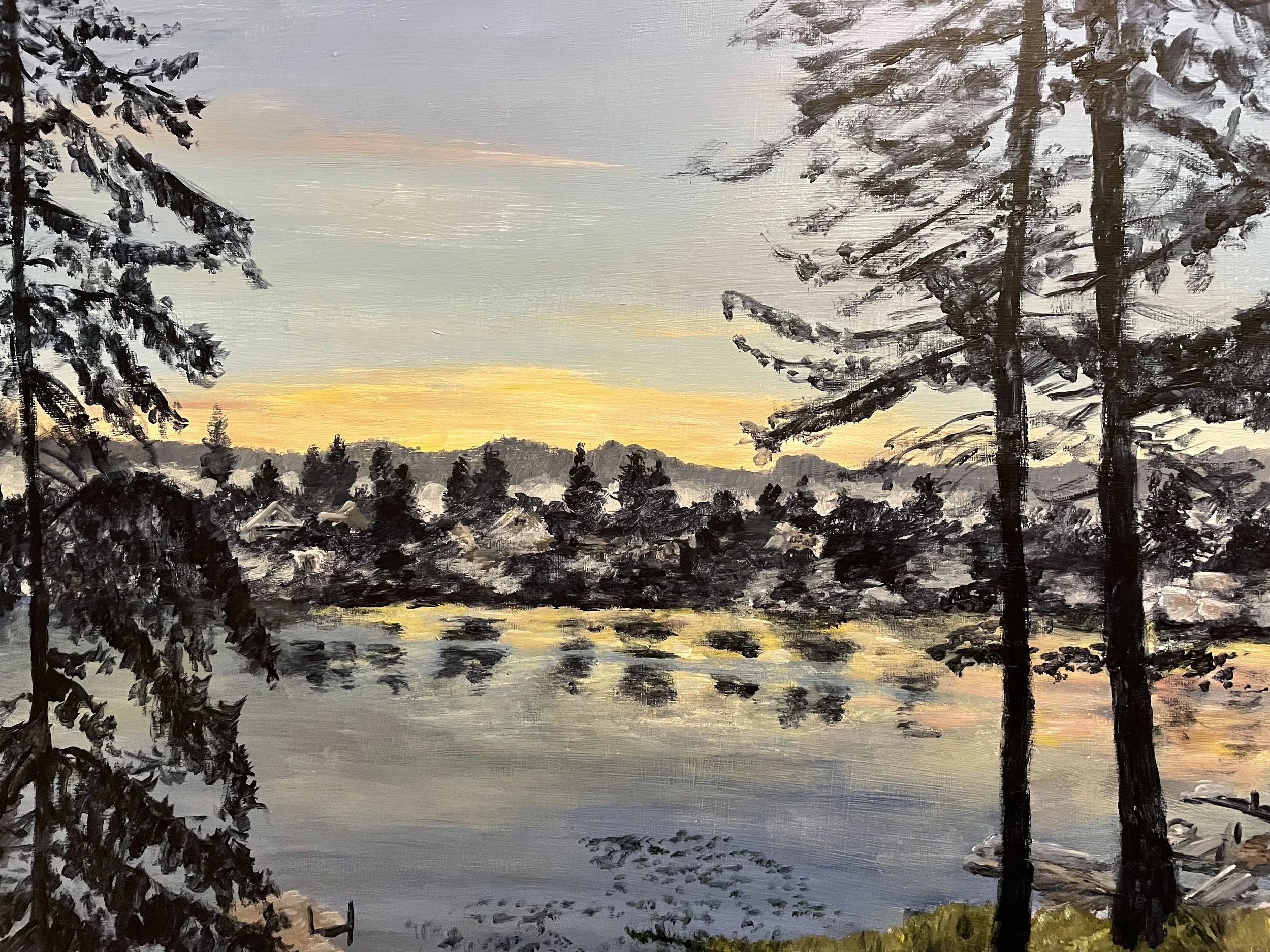 Morning fog on Devil's Lake | 14x18" Acrylic on board | December 2021