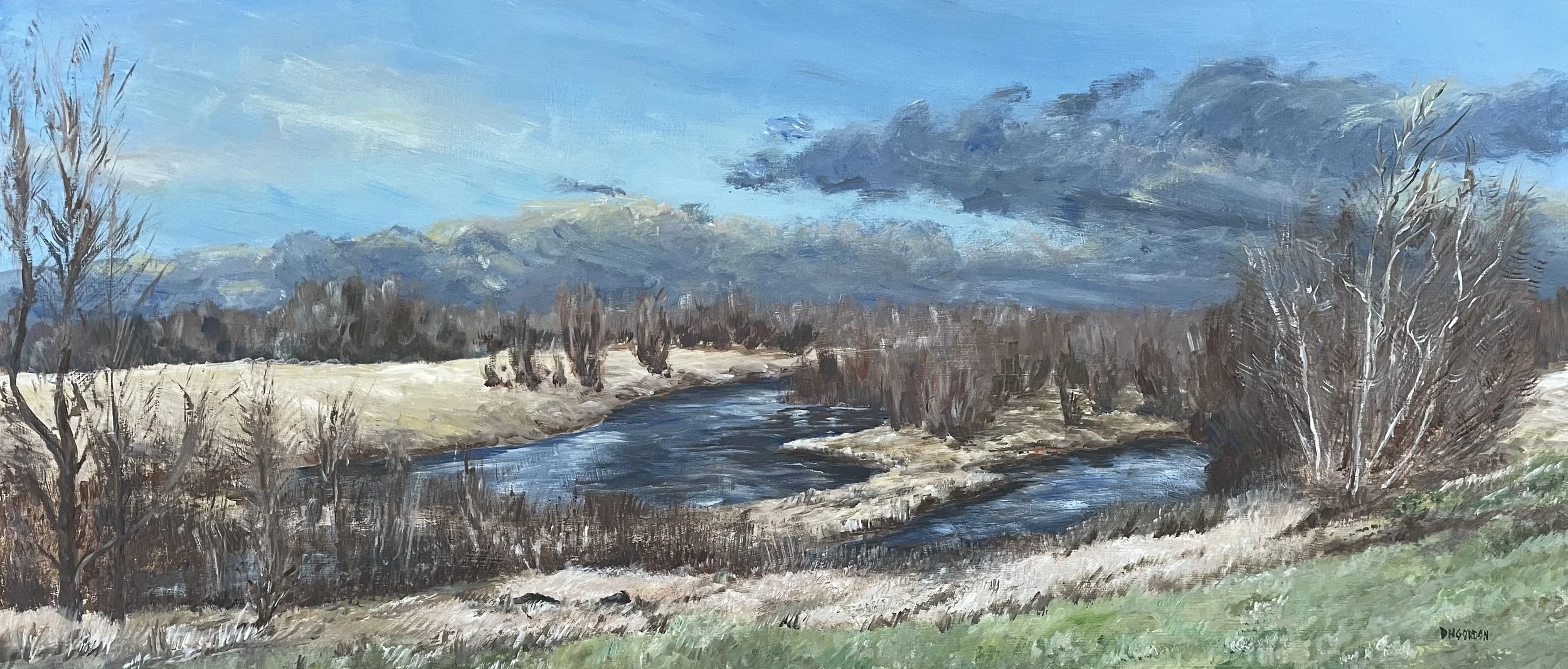 Winter evening on Sauvie Island | 16x36" Acrylic on board | January 2022
